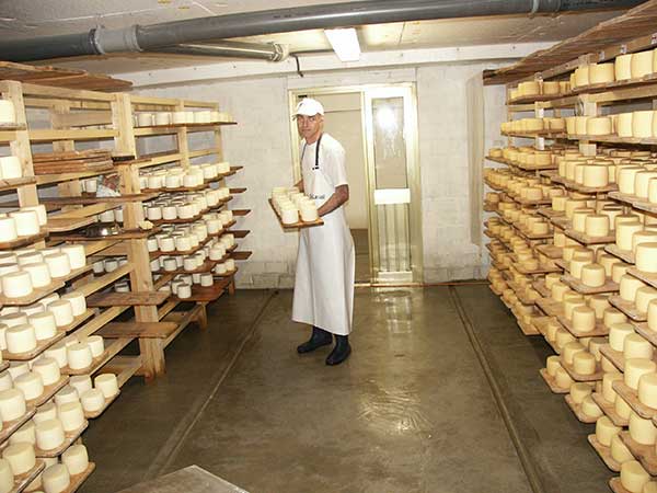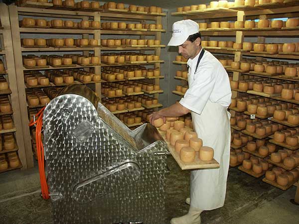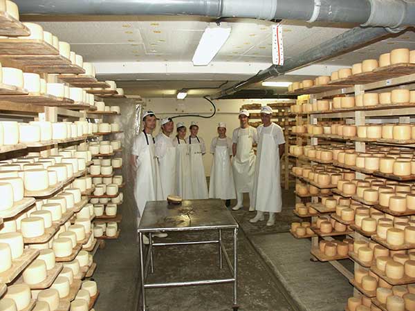 Третій – дев’яностий день – сир знаходиться в підвалі, де його на довгий час залишають у спокої, якщо мати на увазі механічний вплив на продукт. Сир залишається протягом кількох місяців у підвалі, де його щодня перевертають і миють соленою водою. Підвал, де дозріває сир, - святая святих для сироварні. Тут, на полицях стелажів, акуратно складені циліндри сиру. Для його дозрівання і зберігання у підвалі підтримується певна вологість з точністю до 2 – 3 % та температура - до 1 - 2 ˚ . Саме підвал визначає смак та зовнішній вигляд сиру. Тут, сир набуває характерної для нього шкірки, яка є натуральним покриттям сиру, захищає його від висихання і являє собою грибкову флору.