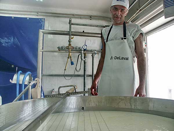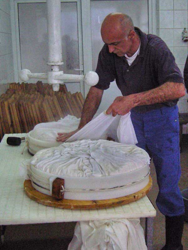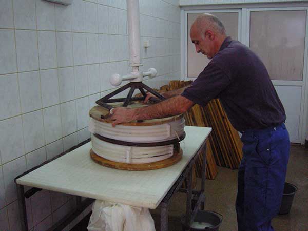 Перший день – виробництво сиру, пресування сирного зерна у формах.